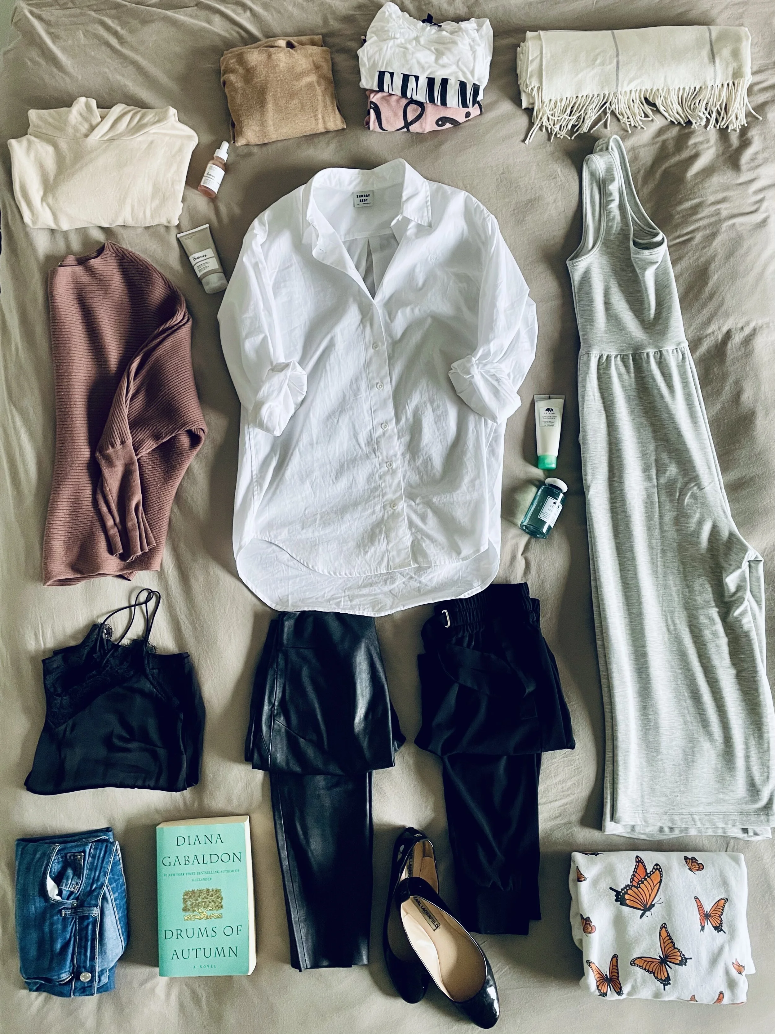 There are many things not pictured here (fitness wear, under tanks, pyjamas, black dresses & blazers.) But I figure those are staples all year round and if I end up wearing them a lot during a season or are in a big event that season, I will feature them in the capsule. Just know this is clearly not the only clothes I own for this season. Just the more curated look of what I wore on the daily with a few staples sprinkled in that didn’t make the cut for the picture.